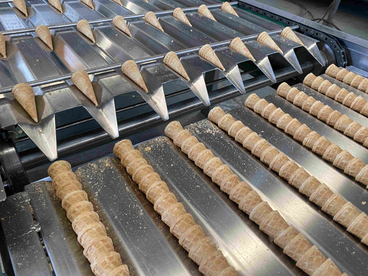ΗΠλάκες ψησίματος από ανθεκτικό στη θερμότητα χυτοσίδηρο, εξασφαλίζουν εξαιρετική θερμική σταθερότητα και συμβάλλουν στη μείωση της κατανάλωσης αερίου.10,000 - 11000 κορμοί κώνου ανά ώραΗ μηχανή εγγυάται ακρίβεια στο μέγεθος κώνου, σταθερότητα βάρους και ελκυστική εμφάνιση.Σύστημα ελέγχου PLCΕπιτρέπει εύκολη λειτουργία και σταθερή απόδοση, ακόμη και σε περιβάλλοντα υψηλής ζήτησης.